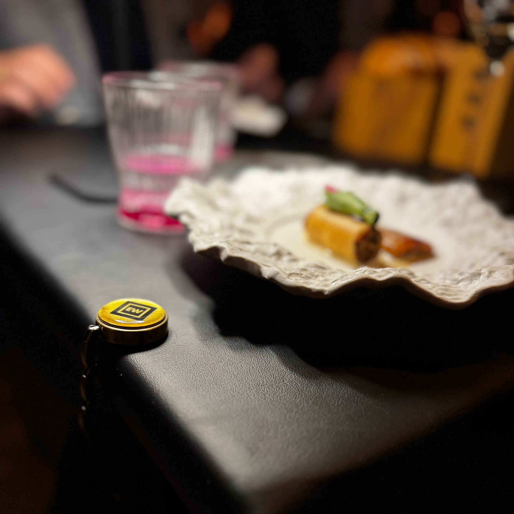 Een stijlvol detail dat een blijvende indruk achterlaat. Deze exclusieve tashanger uit de TafelDiva-collectie tilt iedere tafelschikking naar een hoger niveau. Het logo EW is ambachtelijk vervaardigd op het goud met een hanger in koperkleur.